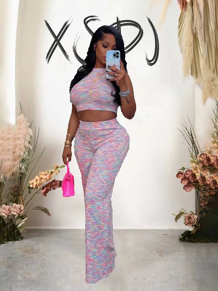 2 Piece Sets Womens Outfits Elegant Stretchy Knitted Summer Suit Sexy Sleeveless Top and Pant Suit Wholesale Dropshipping