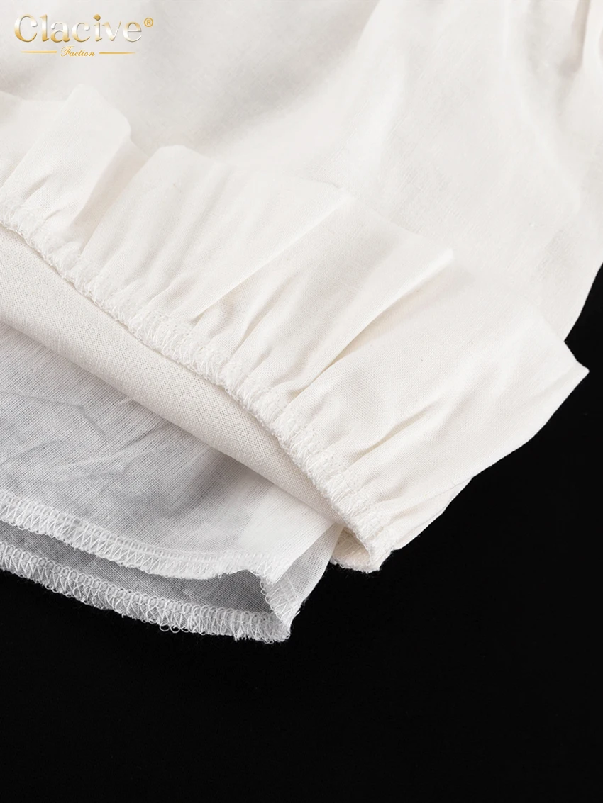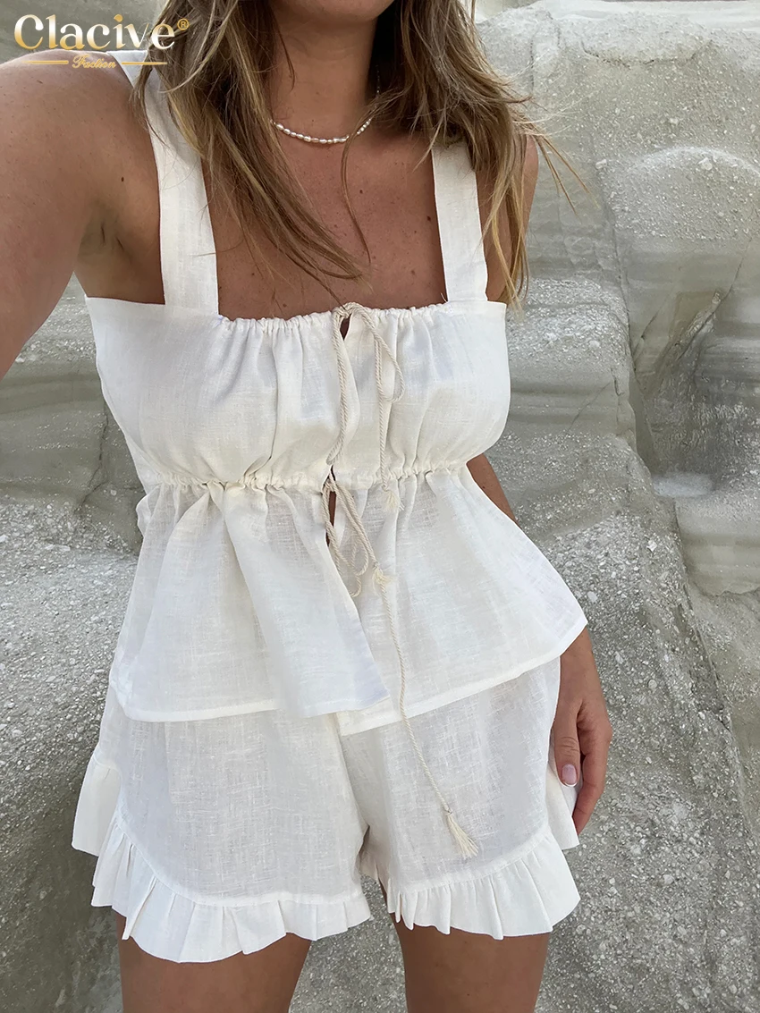 Clacive White Linen 2 Piece Sets Women Summer Sleeveless Tank Top Shorts Set