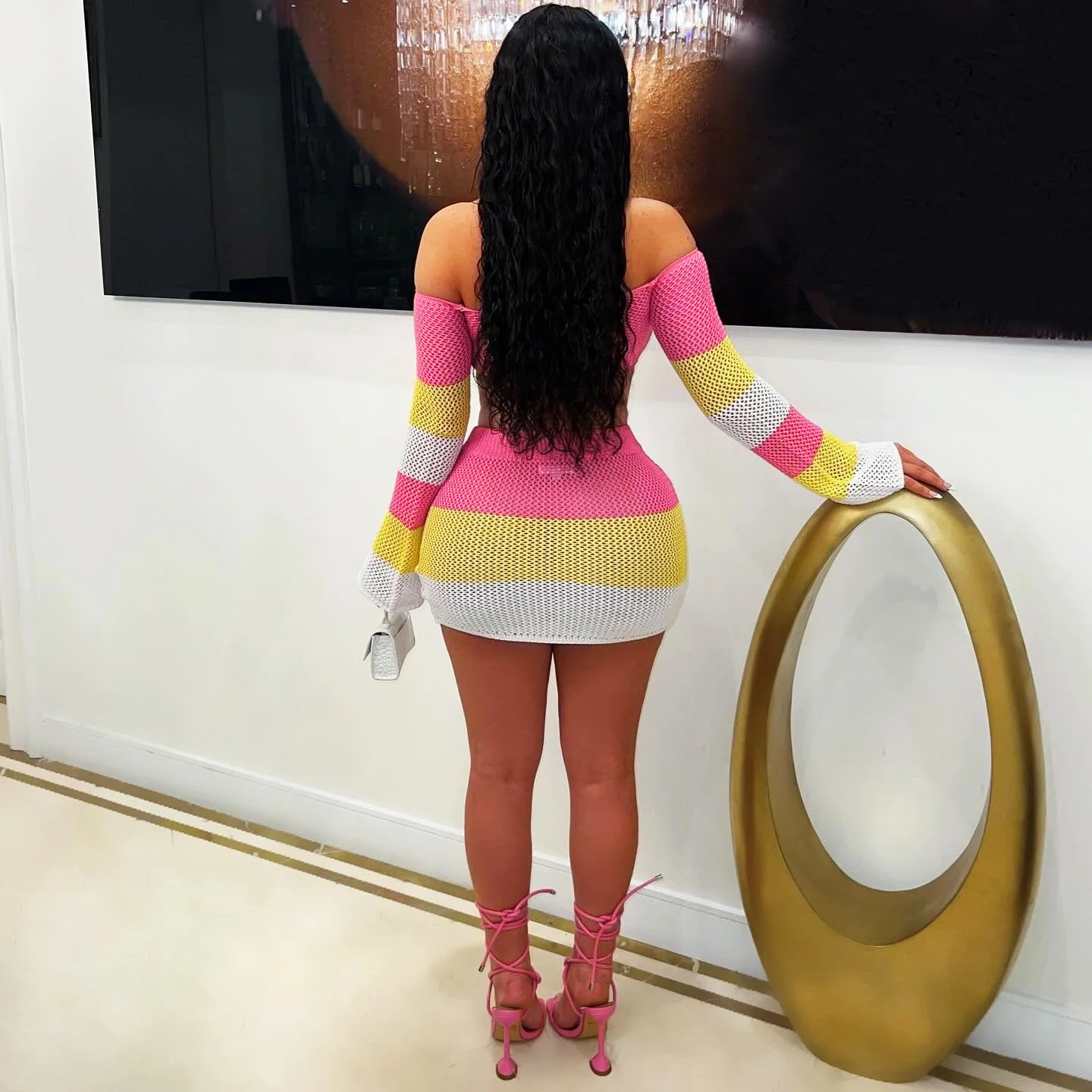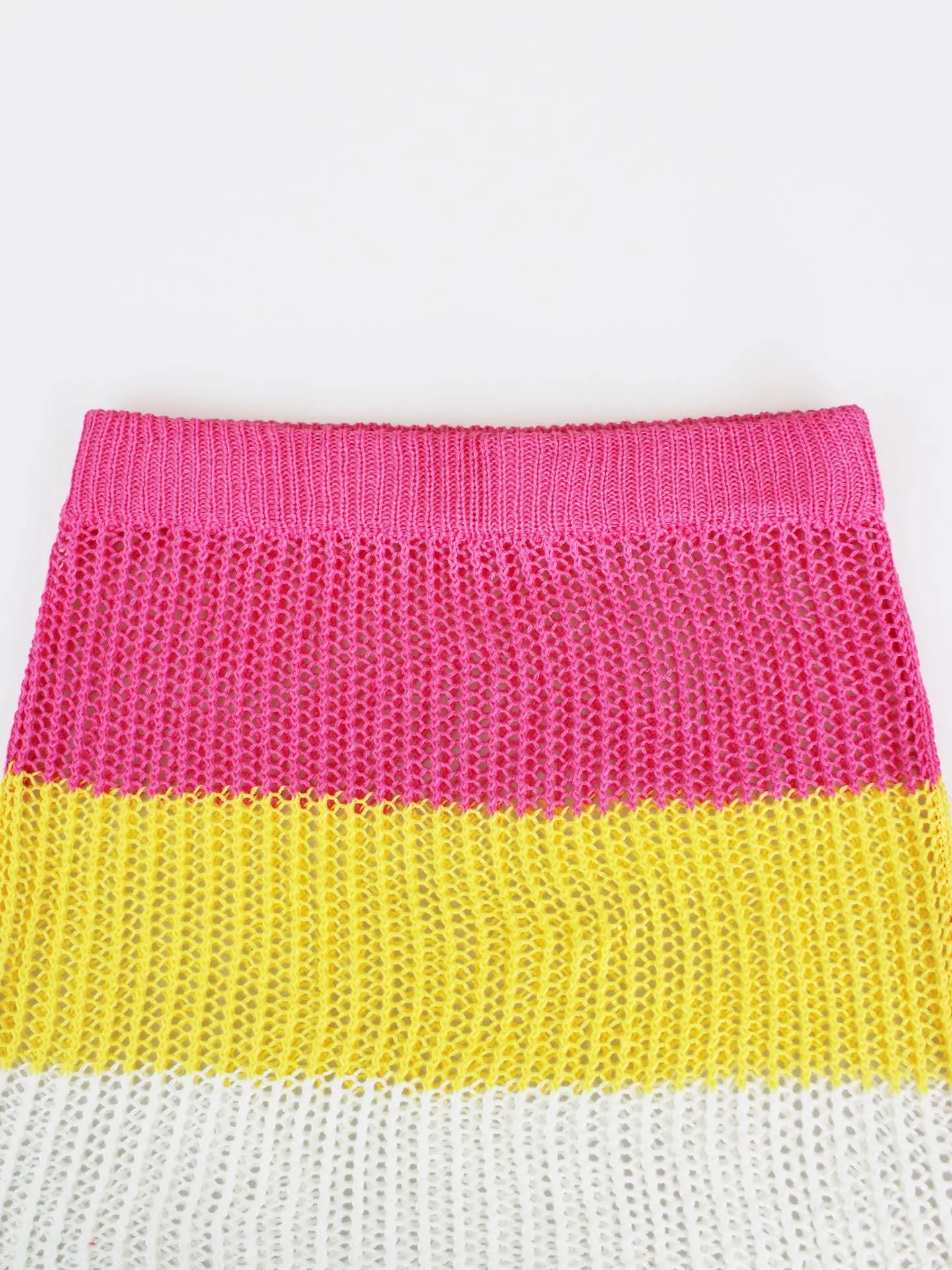 FAGADOER Rainbow Sexy Knit 2 Piece Outfit Set 2025 Beachwear