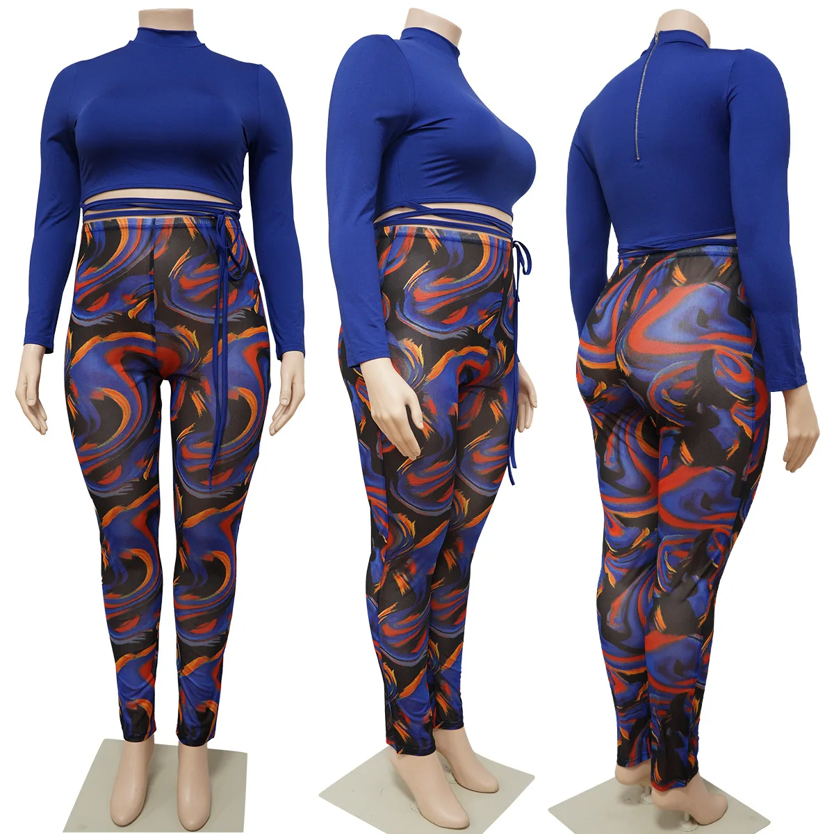 Splicing Collision Sexy Women's Large Size 2 Piece