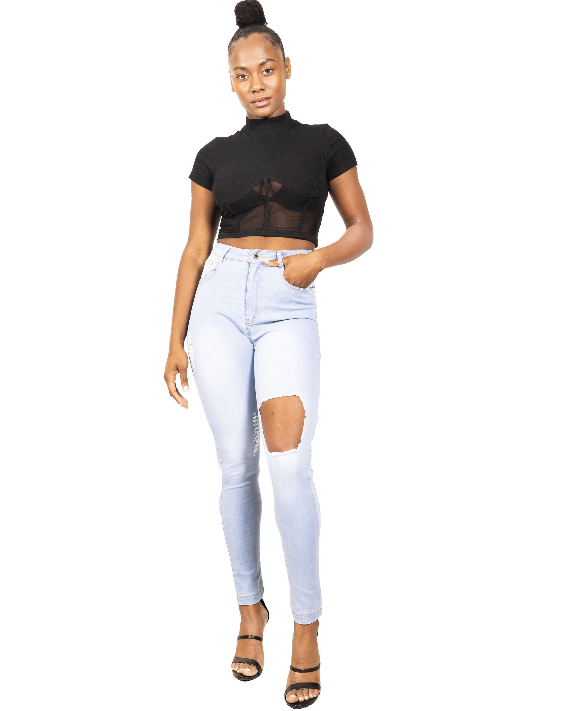 A super-stretchy ultra-skinny distressed denim jean. You can't go wrong with our Tullis Distressed Skinny Jean.
